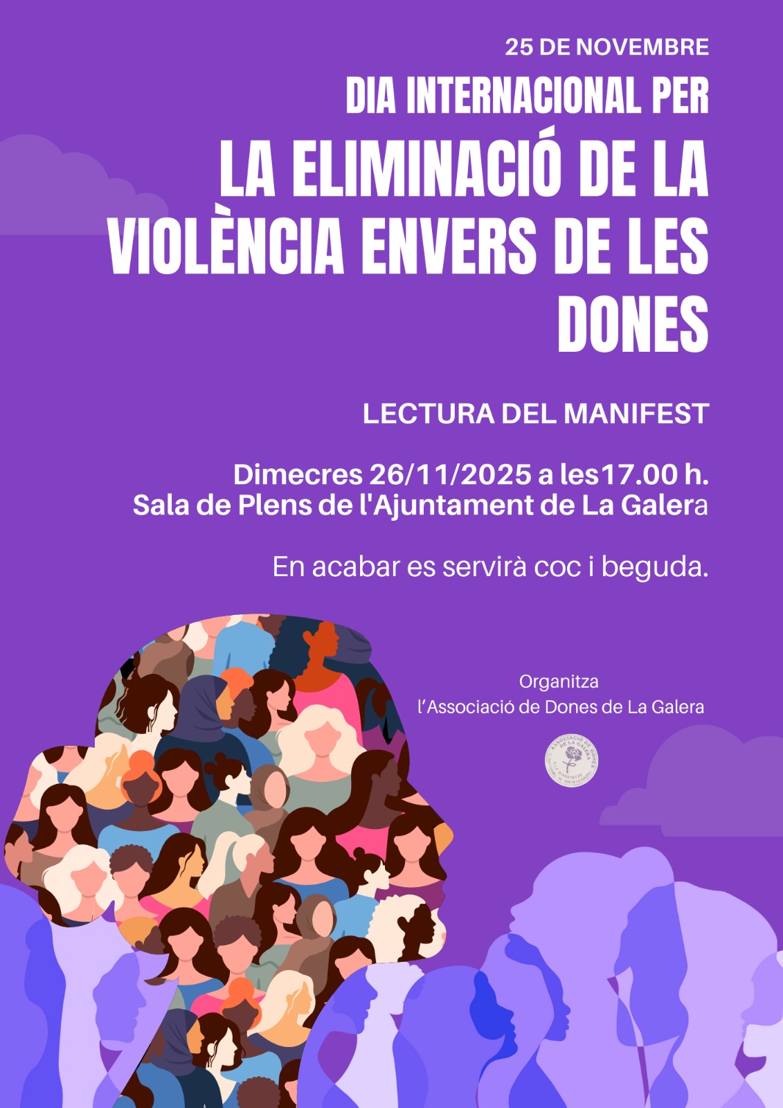 **** Des de l'Associació de Dones de la Galera, per commemorar aquest dia, s'ha organitzat un acte al saló de plens de l'Ajuntament de la Galera, dimecres 26 de novembre a les 17.00 h: