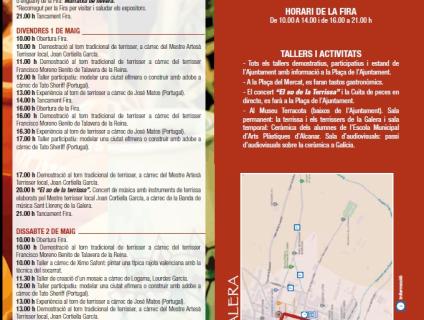 . Exposició de ceràmica contemporània, coincidint amb aquesta Fira, a la Sala 2, sala d'exposicions de caràcter temporal, de Terracota, Centre d'Interpretació de la Terrissa de la Galera.